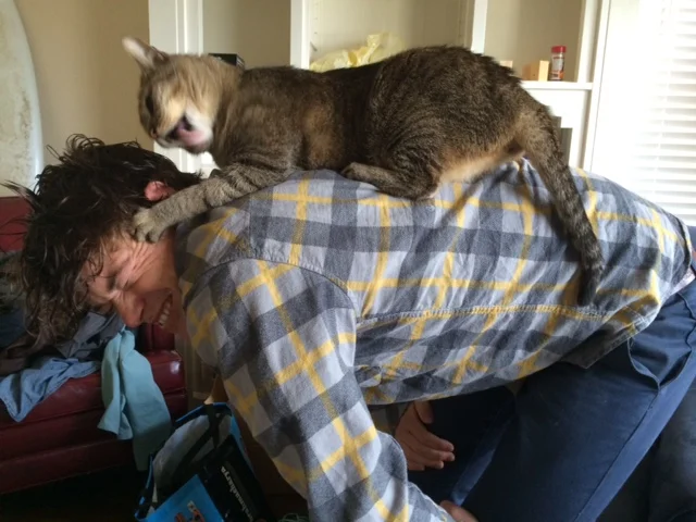How is/was it like? Being staunchly anti-cat for upwards of three decades, Bagheera took some getting used to. To be blunt, he actively terrified and terrorized me for two years. It didn't help that he acted like a dog, bounding towards the door when he heard my keys, assaulting me with licks and nips that immediately led to bites and scratches if I didn't drop everything to fling a shoelace in his direction for 15 minutes. Cooking was even more fun, having him moan frantically like some starving goat every time I opened anything that sounded even remotely like food (dry pasta, Bagheera, really?), and flopping over to rest only in exactly the place I needed to step (I think he gave himself bonus points for tripping me while I was holding full scalding pots of sauce). The best was sleeping though. Our bed was his shower, yoga mat, launch pad, scratch post, boxing ring, grooming salon, and of course, his bed - though 11pm to 7am was truly the only time he didn't sleep (why sleep when you could be tormenting your captors?). If we tried to lock him out, he would plant himself outside the door and howl for eight straight hours. It was actually something I manically marveled at countless nights while staring with bloodshot eyes into the 3am darkness: "How is it…HOW…IS…IT…that cats don't lose their voices?!"